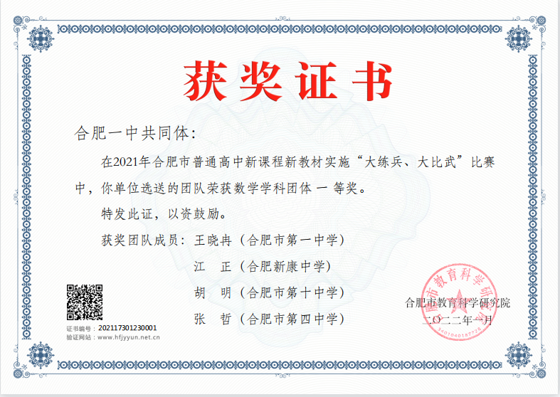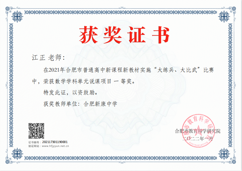 2021学年度,学校教师积极参加合肥市“大练兵、大比武”活动、优秀课例评比、班主任基本功大赛,包河区优质课大赛等教学类竞赛,近百人次获奖,其中江正老师荣获合肥市一等奖。