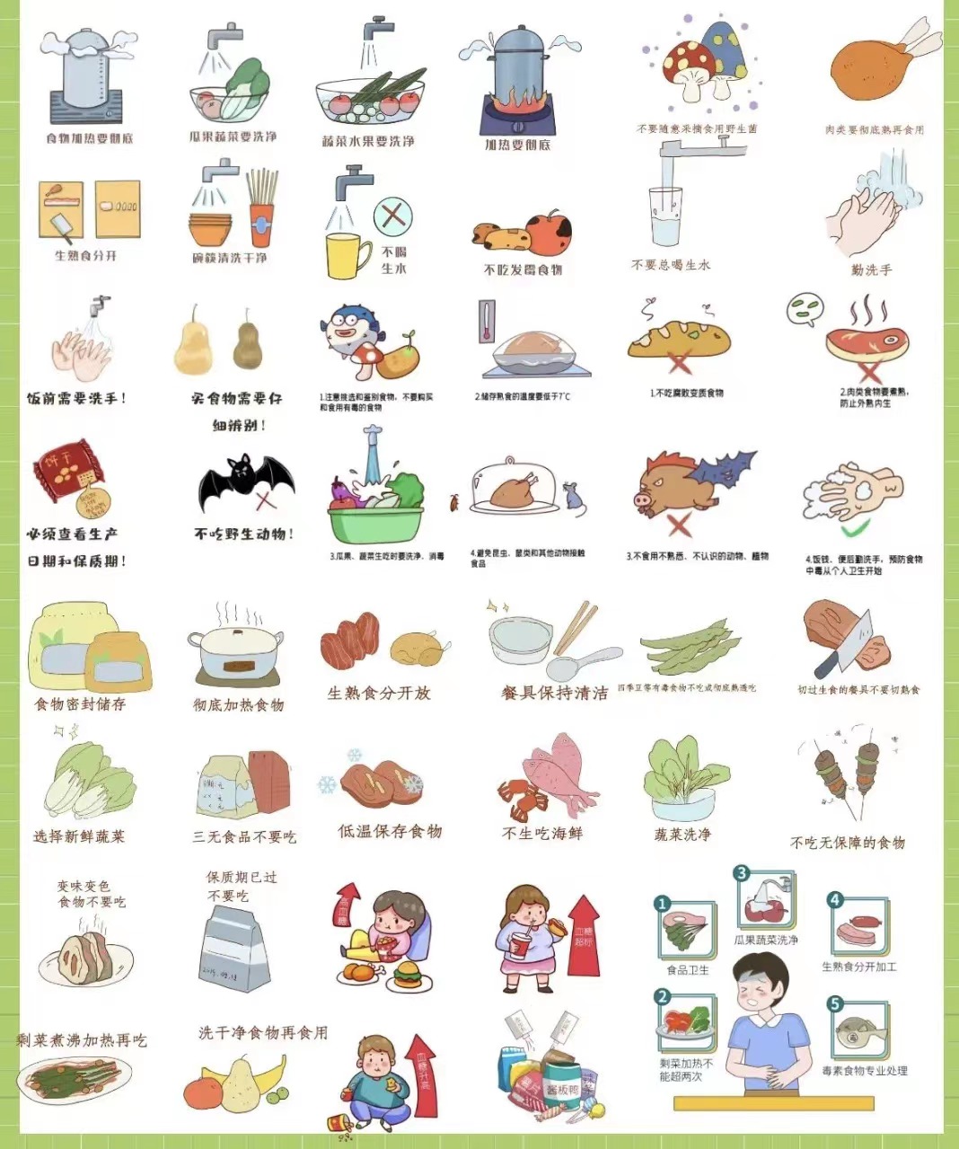 4、加强食品安全教育。教育孩子注意饮食卫生,不食用“三无”食品和“过期”食品,不暴饮暴食;关心孩子的饮食起居,不吃生冷食品。