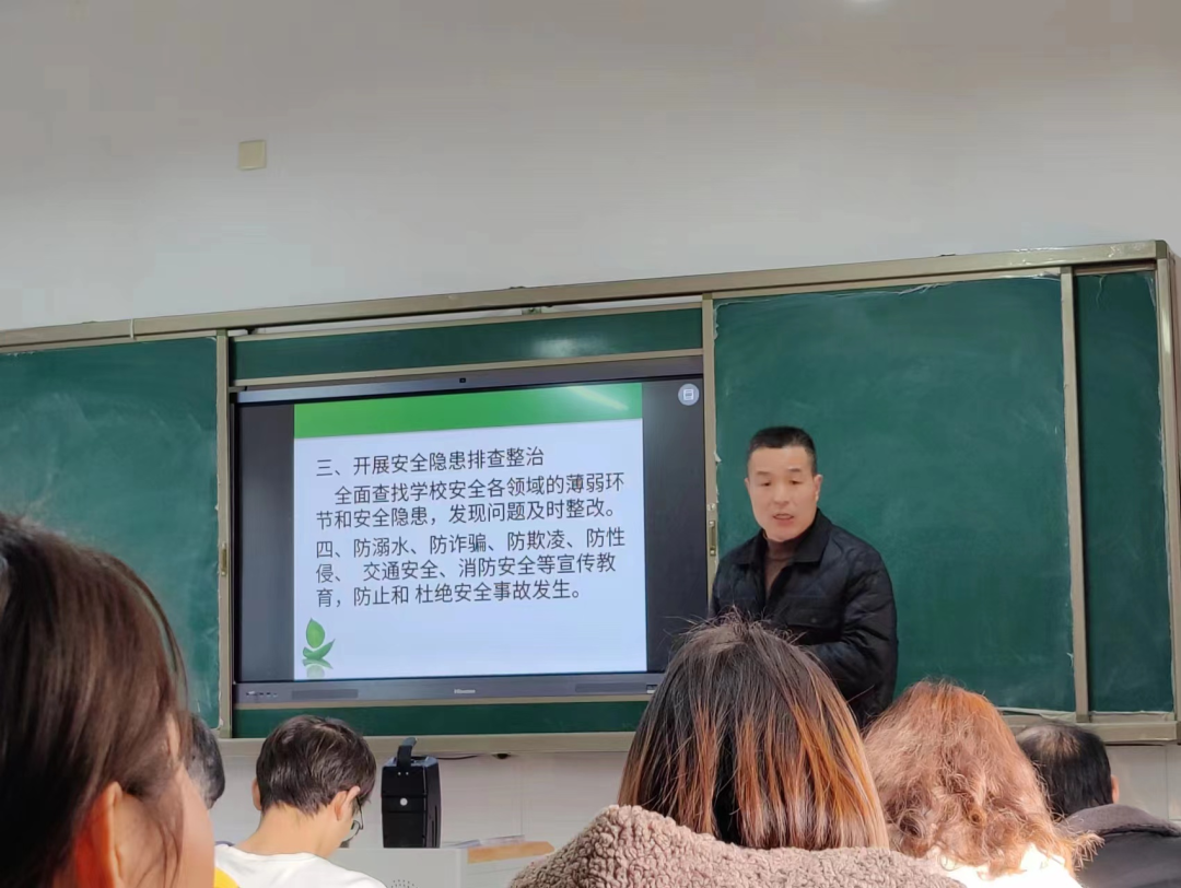 会议要求各位教师,树牢全员安全意识,突出特殊群体学生安全防范重点。各班再次全面排查,动态更新台账。建立一生一档风险台账和一生一策心理健康档案,常态化开展教师承包制,一对一帮扶。使用好谈话记录本。要全面查找学校安全各领域的薄弱环节和安全隐患,发现问题及时整改。树立防溺水、防诈骗、防欺凌、交通安全、消防安全等常态安全意识,防止和杜绝安全事故发生。