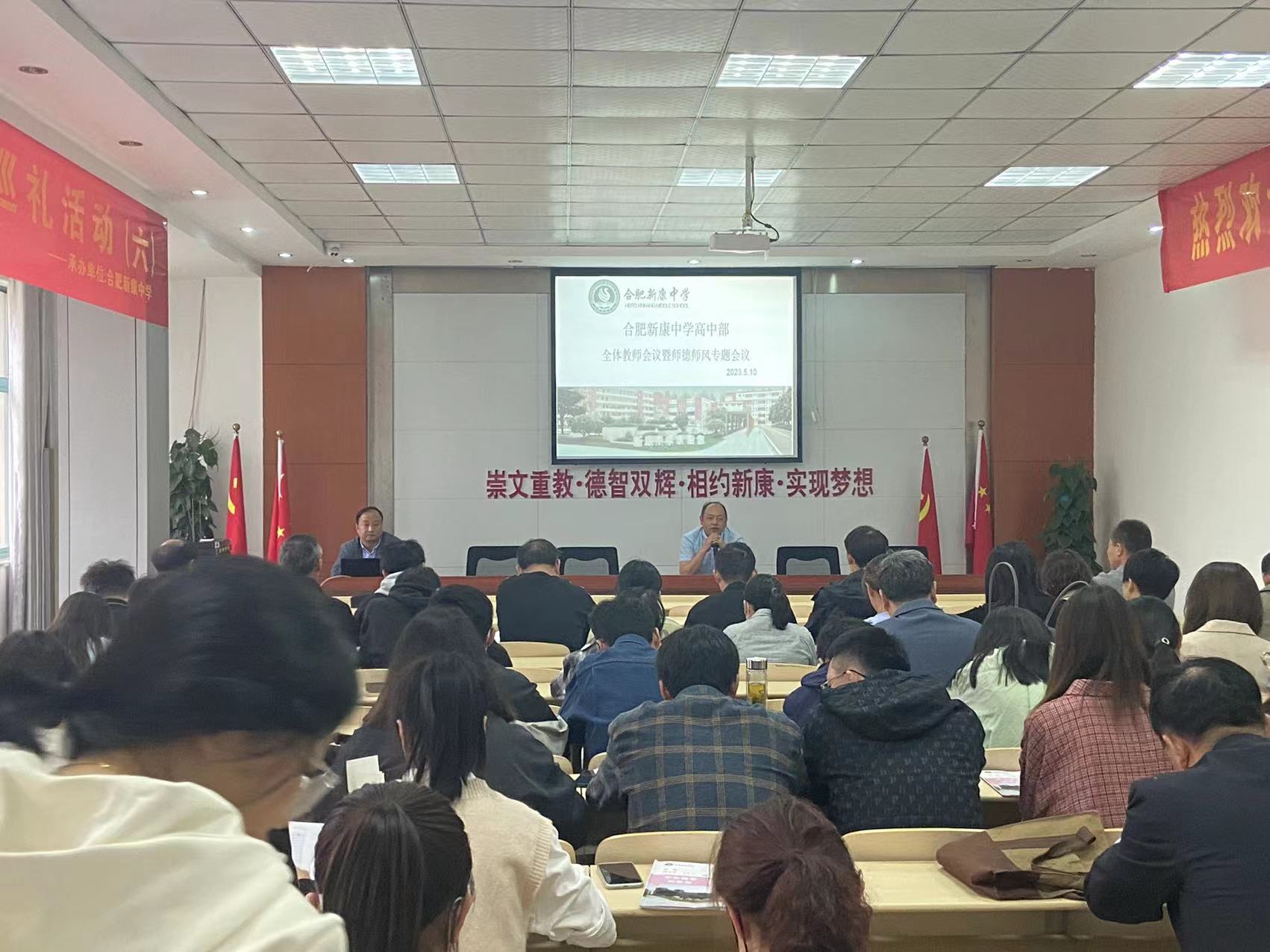 为了进一步创造良好的教育教学环境,加强教师的师德师风建设,提高教师的专业学识和职业道德素养。我校高中部于2023年5月10日下午召开高中部全体教师会议暨师德师风专题会议。