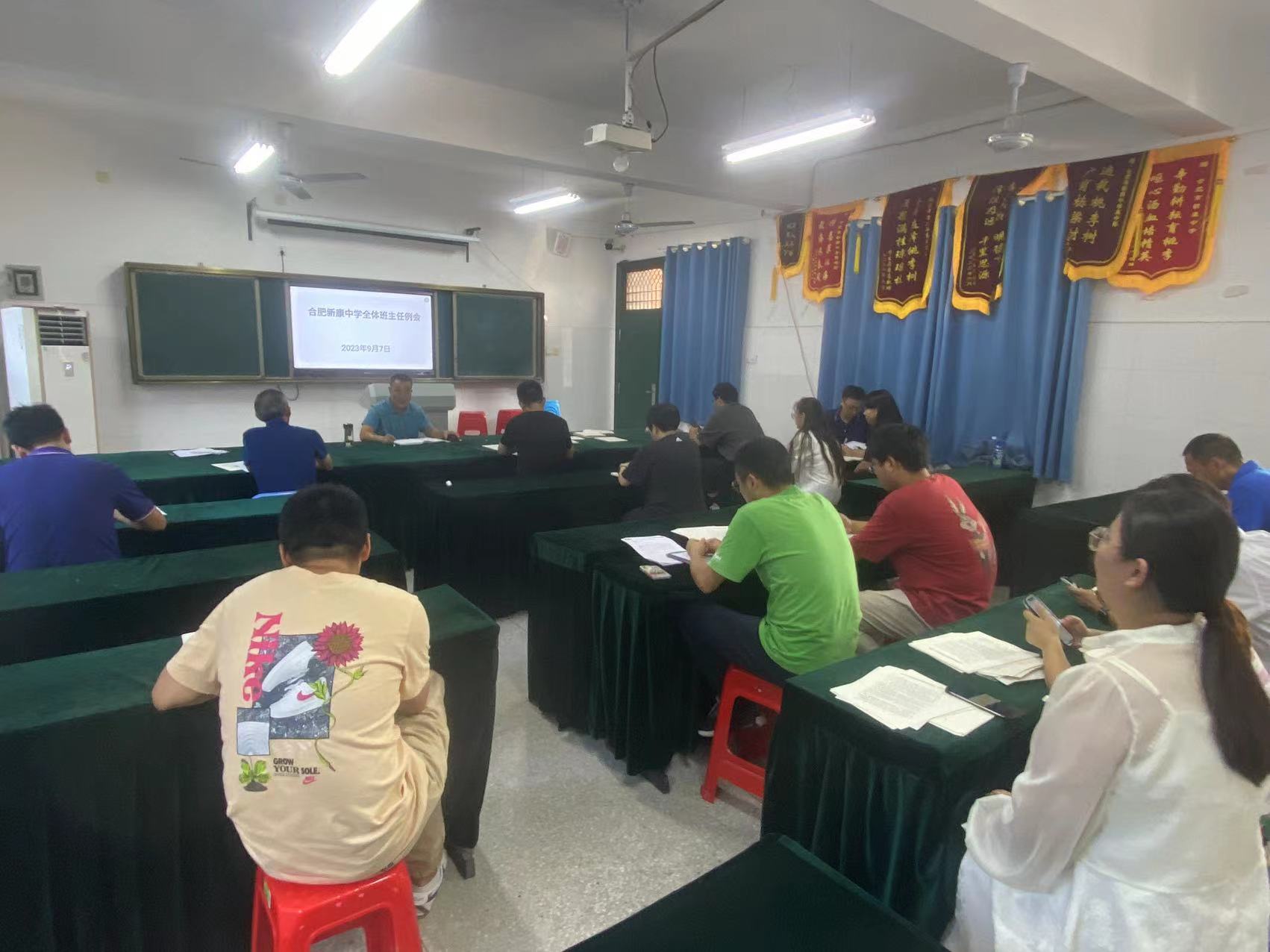 在班主任周例会上,李主任总结了入学以来学生校服、仪容仪表、学生就餐、校园卫生及学生就寝等各个方面出现的一些问题,希望班主任勤跟班、强落实、重管理、严要求,积极面对班级管理中问题,静心育人,当好班级的领头人。同时做好第一周学生放假工作相关安排,并且提出班主任工作是学校工作中的重中之重,它是学校与家长沟通的一个重要桥梁。