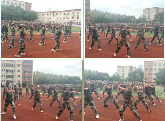 “秦时明月汉时关,万里长征人未还。但使龙城飞将在,不教胡马度阴山。”这是充满力量的军体拳。同学们一击一打,一步一踏,淋漓尽致的展现出了军人的风貌,齐齐高喊的声音响彻云霄,这是青春独特的飒。
