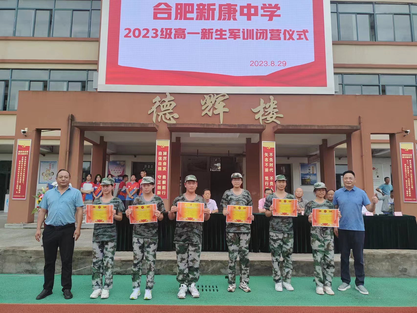 出席本次闭营仪式的有:合肥市教育局派驻合肥新康中学第一书记稂书记,合肥新康中学教育顾问顾明,合肥新康中学党支部书记、总校长王俊,党支部专职副书记陈晓永,高中部校长段方及高中部各处室主任。