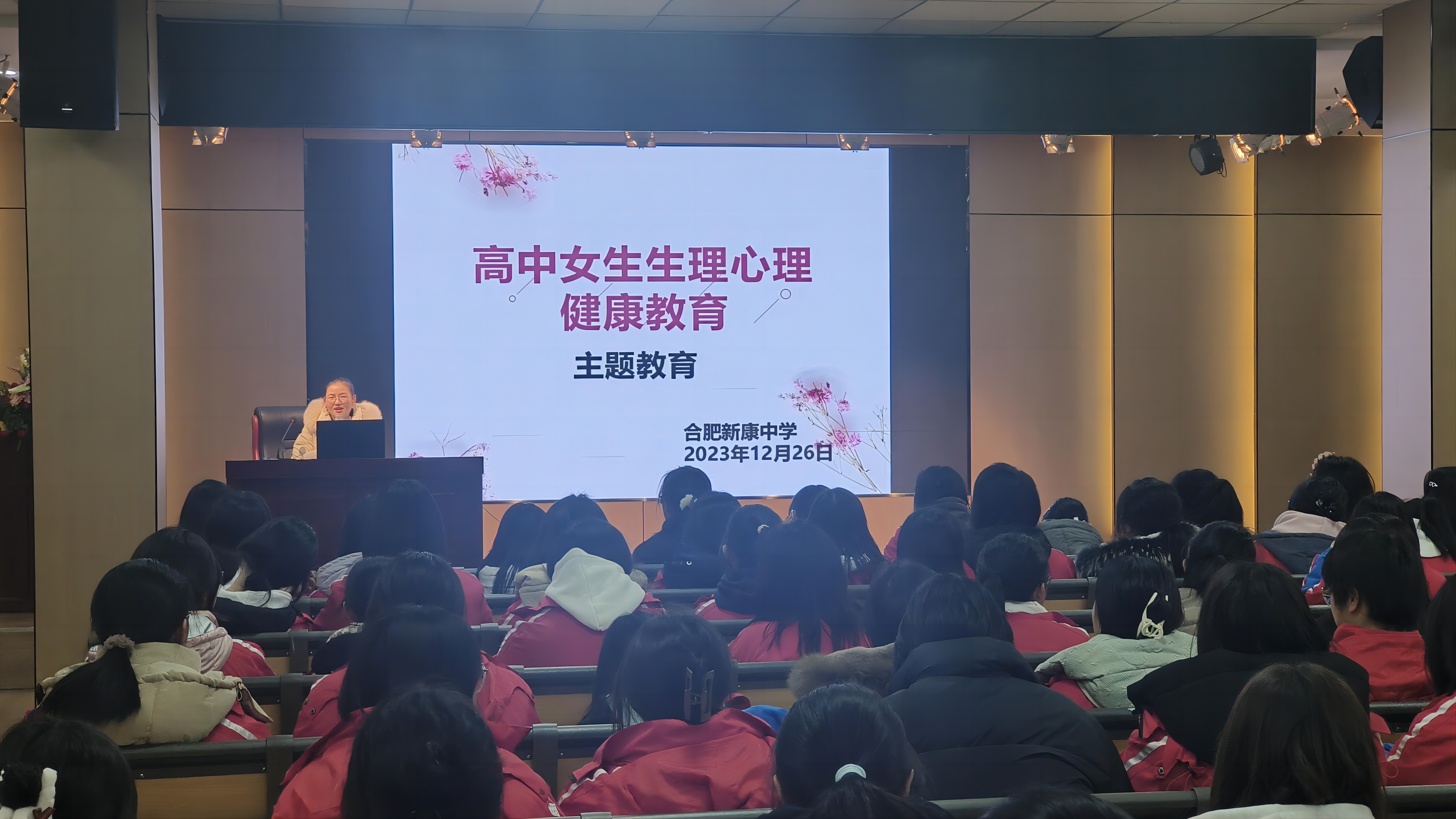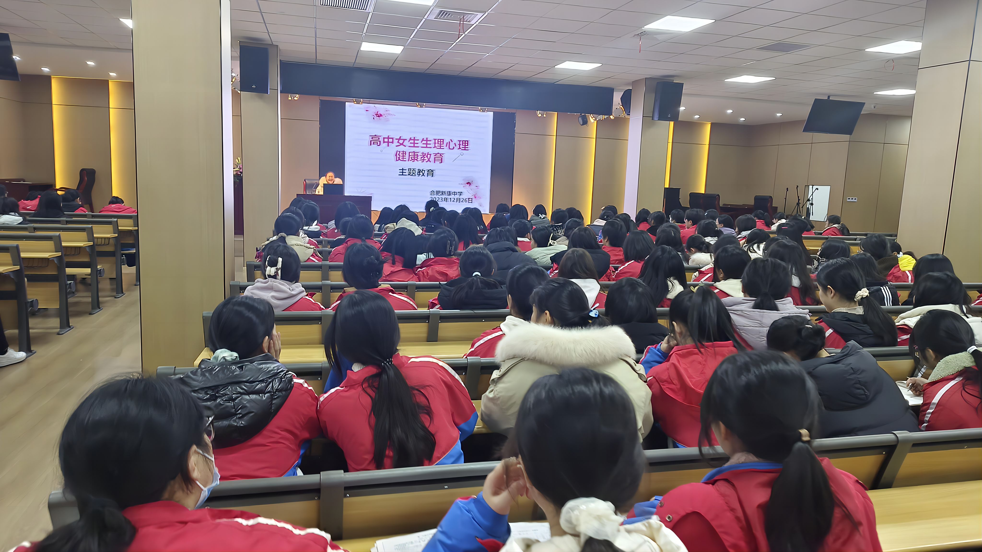 万物应时动,花开应有时。青春期是每个人必然会经历的重要时期,它有花季般的美好,也有雨季般的烦恼。为了加强女生青春期生理卫生以及心理健康知识的教育和指导,引导学生正确对待青春期身体、心理的变化,消除成长中的困惑,增强其自我保护和防范意识,2023年12月26日晚上,高中部对全体女生组织开展了生理心理健康教育讲座。