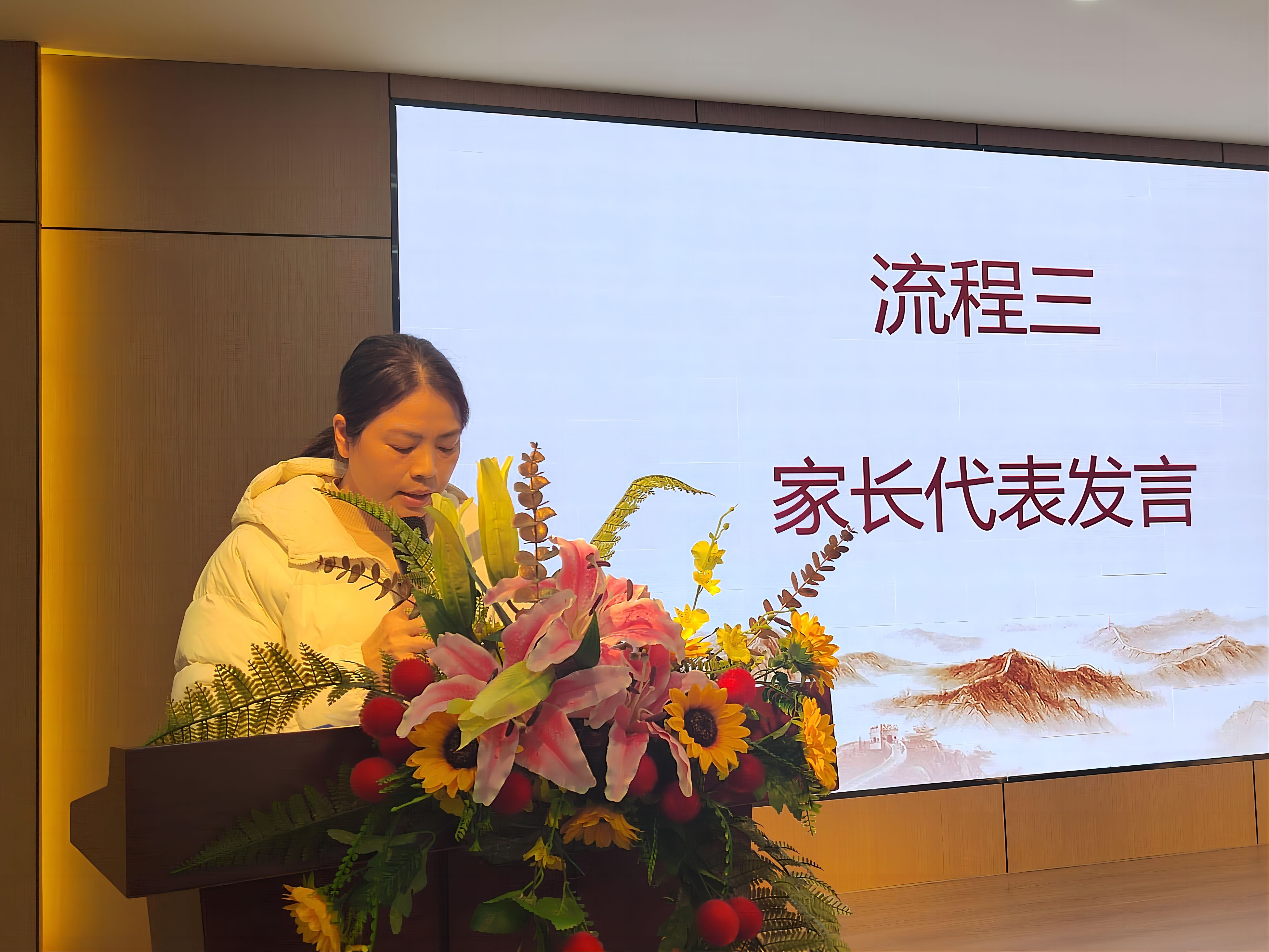 高二1班谢婧怡的妈妈代表全体家长对老师们的辛勤付出与无私奉献表达了衷心的感谢。会上,她建议家长在学习上要鼓励孩子敢于挑战,做一个主动探索、不断求知的人;在成长的道路上要引导孩子直面挫折,做一个不断完善、日益精进的人;在品行上要教育孩子善于担当,做一个有家国情怀、厚德载物的人;在家校共建上,家长自己要主动作为,做一个积极配合、增强合力的人。她的分享生动具体,带给了家长们很多新的启发。
