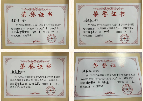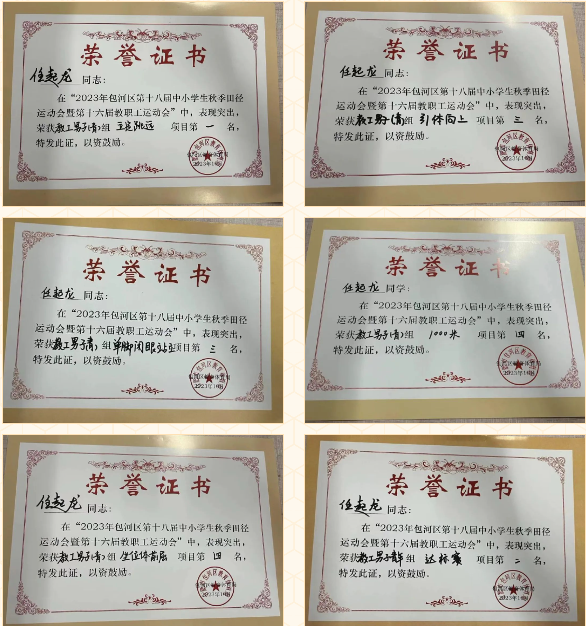 任起龙:坐位体前屈第四名、引体向上第三名、1000米第四名、单脚闭眼站立第三名、立定跳远第一名、达标赛第二名、十字象限跳第七名。