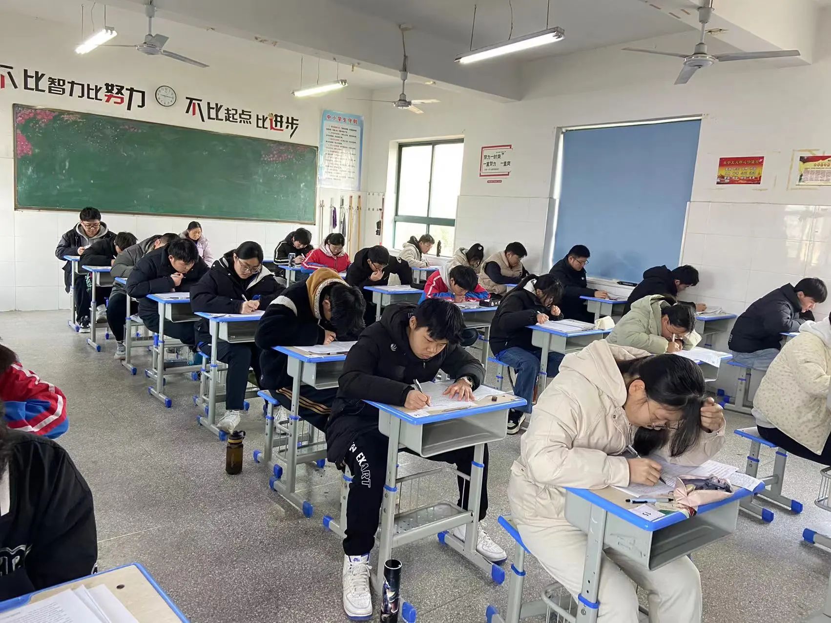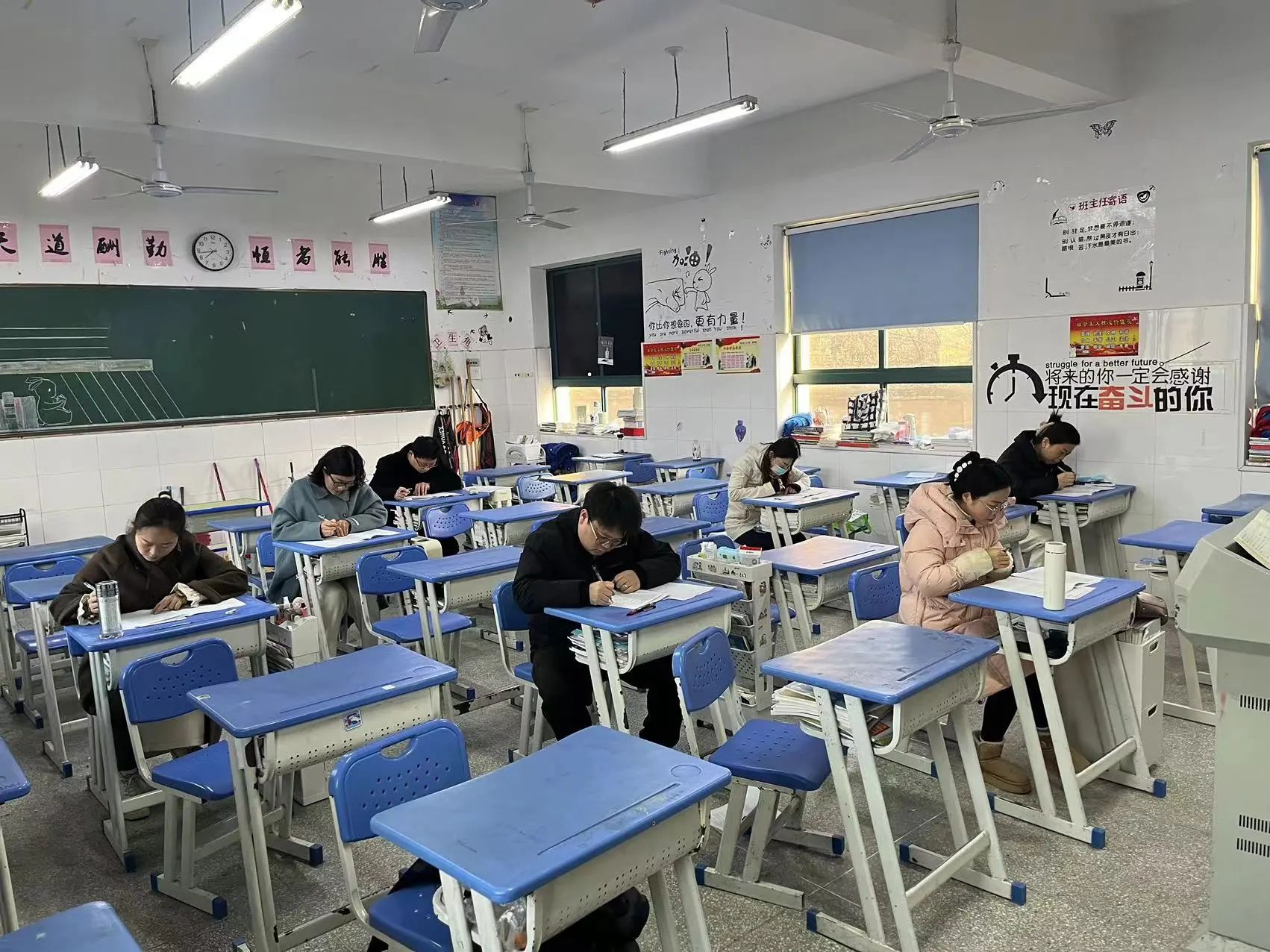 我校为促进教师专业成长、优化课堂教学,特举办师生同场测试。在此专门为教师设立考场,与学生同步时间、使用同一试卷参加考试。无论何时,教师们都将始终陪伴学生,共同应对挑战,携手共创辉煌。
