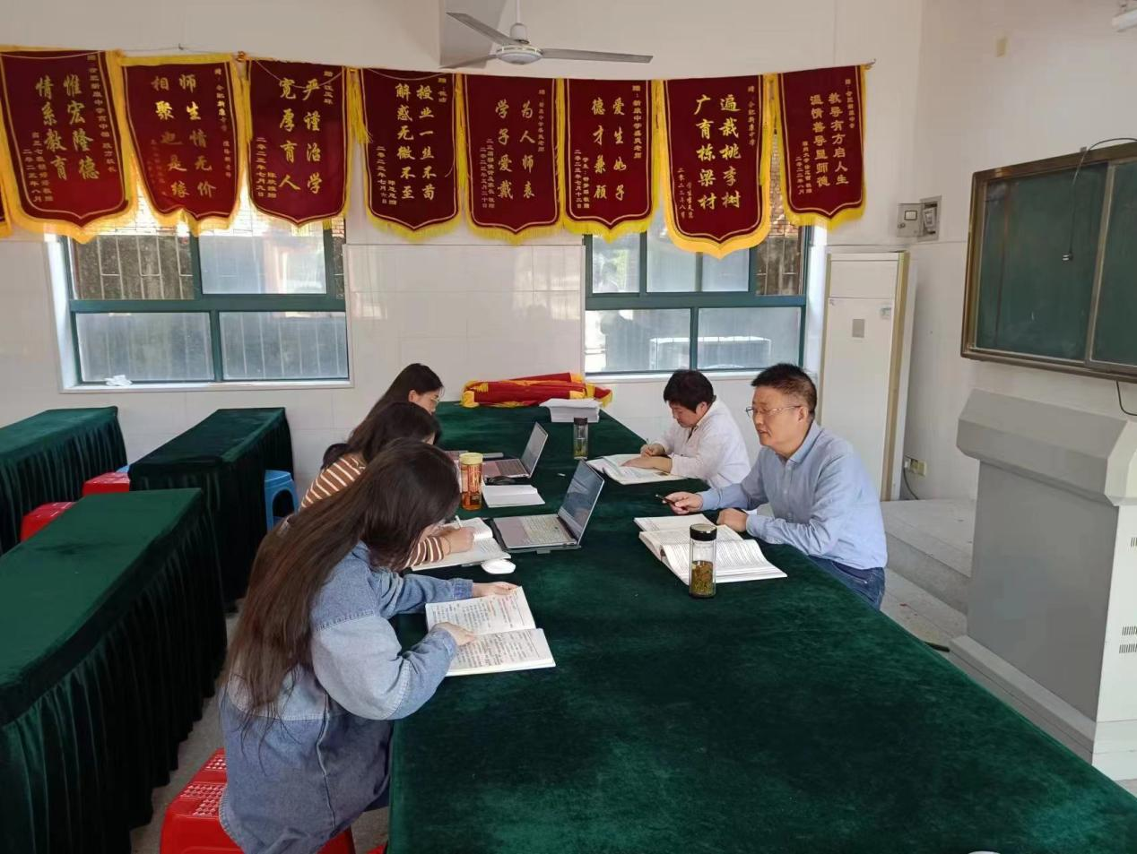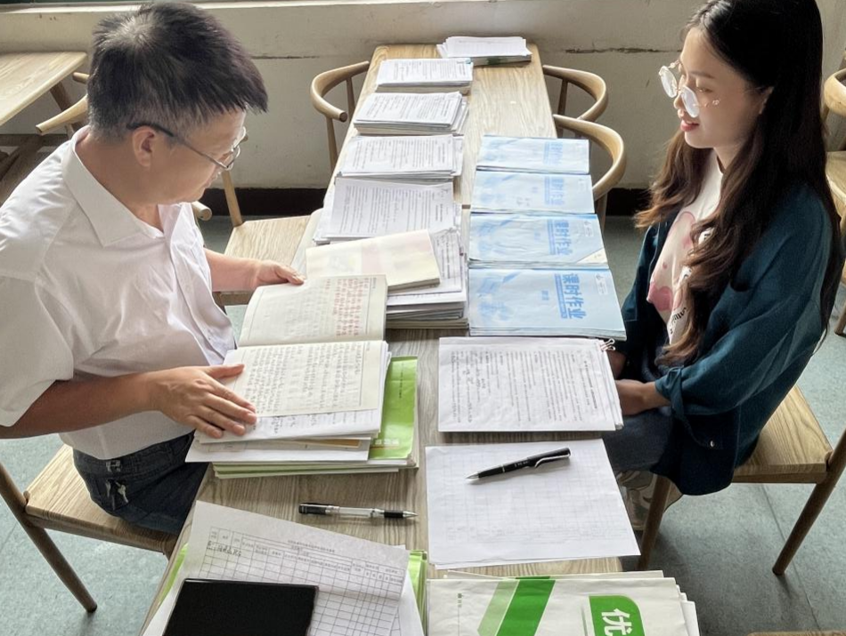 学科主任检查组员备课和作业批改场景