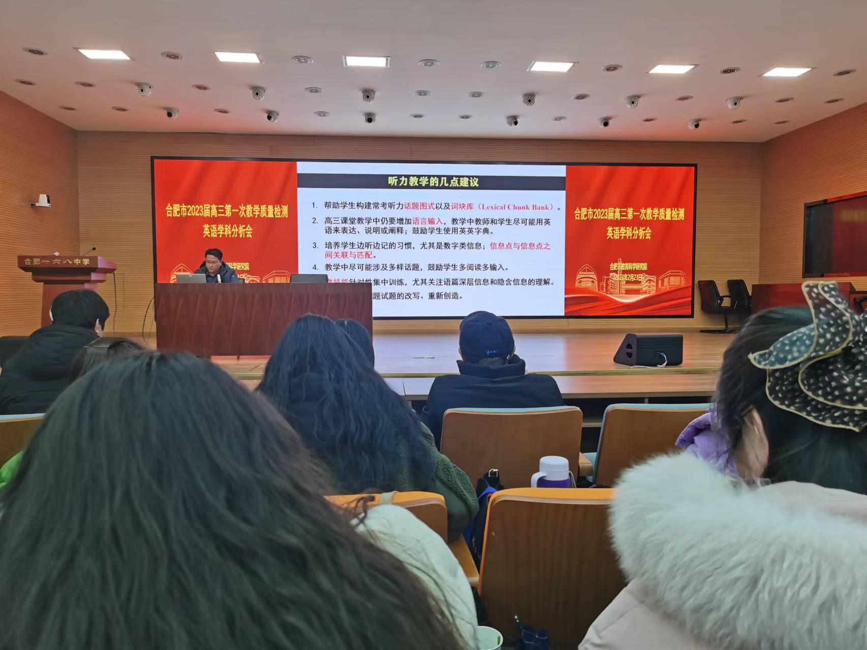 为了扩大教师的视野,了解英语教学的新信息。本学期英语教研组参加了三次合肥市教体局举行的教研活动(在合肥市八中举行的"2023年英语高考分析",合肥一中北城校区和瑶海校区举行的"大单元教学"观摩课)。通过参观学习,大家提高了认识,拓宽了教学思路。