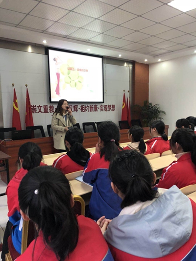 为全面贯彻落实素质教育,深化德育工作,坚持立德树人的办学宗旨,3月18日下午,合肥新康中学高一年级组在综合楼二楼会议室,对高一全体女生进行了“青春期爱的教育系列专题”之“因为美丽,所以珍惜”为主题的知识讲座,此次讲座由年级组长余丽老师统筹策划,陈文、潘秀娟老师制作海报、PPT,刘静、张小莉老师主讲,为女生们呈现了一场触动心灵的讲座。