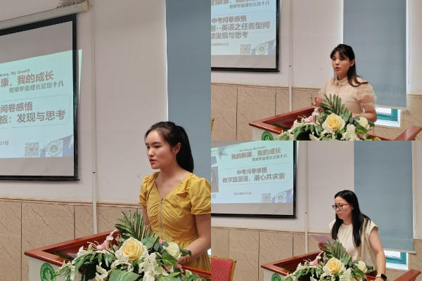 下午第二场——中考阅卷分享交流活动。我校参与2024年中考阅卷的老师们分享了试题的评分细则,以及学生常出现的答卷失误,并对今后的教学提出了具体建议。在这个环节的活动中,在场所有老师均参与交流互动,看到了自己的优势,也意识到了不足。