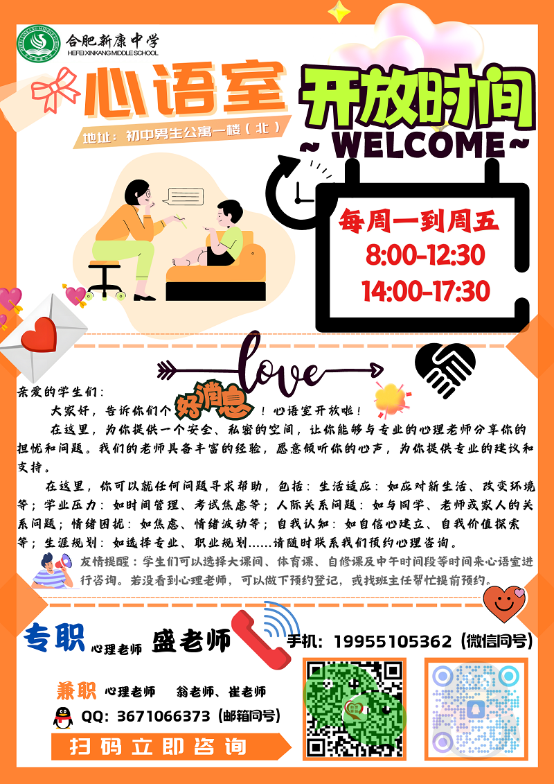 合肥新康中学心理辅导中心开放时间