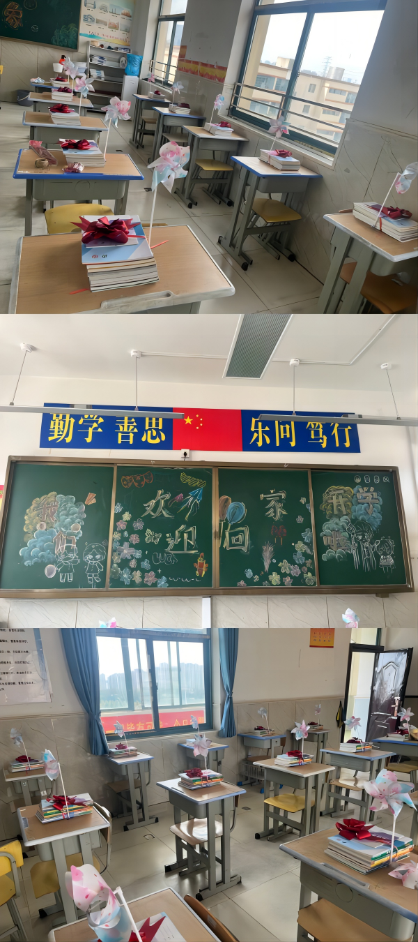 学生回到班级的惊喜感更强。温馨和喜庆的班级环境,让同学们感觉像是回到了家;整齐的座位和桌上摆放整齐的书本,让同学们感到暖心;一份精心准备的小礼物,燃起了同学们欢喜的心情。