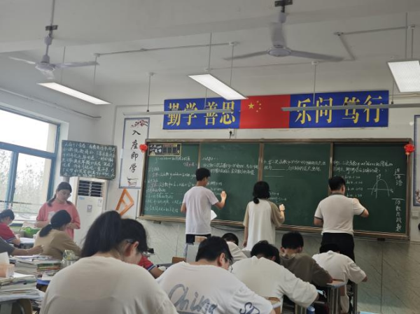 2024年9月14日,数学组王聪老师以导学案方式开启y=ax2+bx+c图象与性质的提升课。同学们全员参与讨论,在回答问题后教师及时给学生进行赋分,展现了一种很值得学习的教学形式。二次函数题目采用了数形结合讲解,能让学生更直观、更容易的去理解。