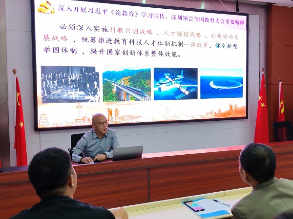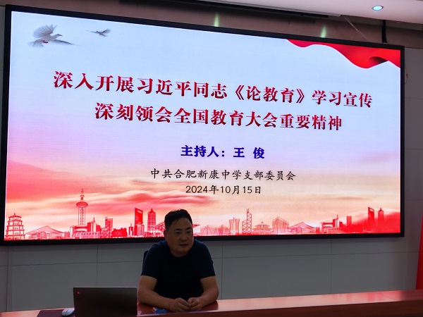 10月15日,合肥新康中学党支部王俊书记主持开展习近平同志《论教育》学习宣传动员活动,专职副书记陈晓永公布、解读学习宣传活动方案。