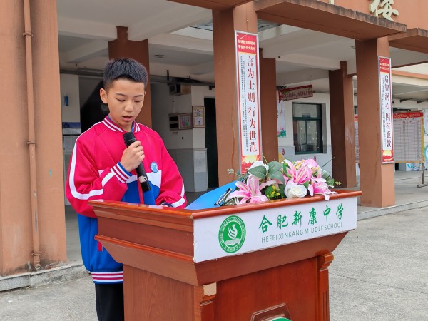 为贯彻党的教育方针,坚持立德树人的根本任务,落实“五育并举”,提升学生的综合素养,促进学生的全面发展。10月21日上午,合肥新康中学初中部举行了“勤为心之所向,共沐劳动之光!”主题升旗仪式。活动由七(5)班的苗宇轩同学主持。