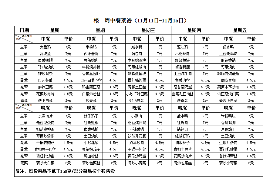 合肥新康中学11.11-11.15一周菜谱