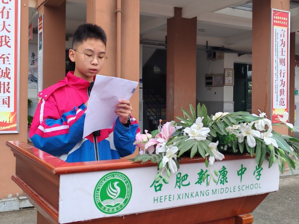 为弘扬文明之风,提升学生的文明素养,创建文明校园。新康中学初中部于11月18日上午举行了“举手投足间,文明在身边”主题升旗仪式。活动由八(5)班高天佑同学主持。