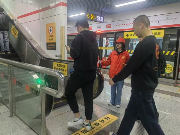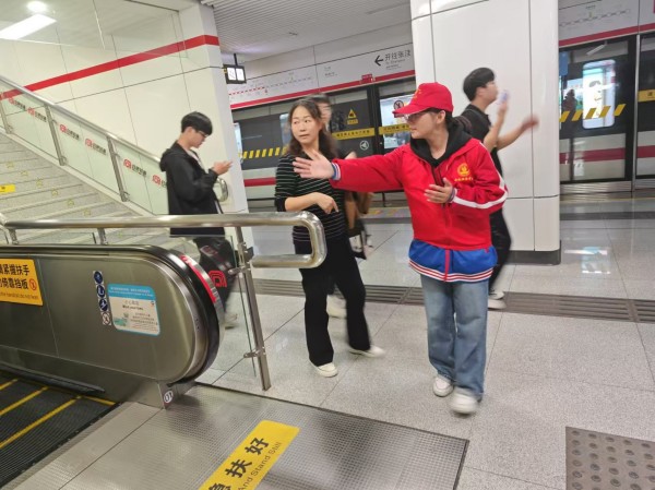 每个周末,他们早早地来到地铁站,在站点工作人员的指导下,迅速熟悉各个岗位的职责与工作流程。无论是在自动售票机前耐心地为乘客解答购票疑问,协助老人、小孩操作购票界面,还是在安检口提醒乘客有序排队、配合安检,亦或是在站台边引导乘客安全候车、先下后上,都能看到他们忙碌而专注的身影。