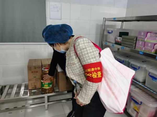 随着大会的圆满落幕,合肥新康中学膳食监督家长委员会正式启航。随后,家长代表和学校领导班子成员在食堂王霓经理陪同下,深入食堂内部对大宗食材采购、冷冻食品储存、加工环境卫生、烹饪操作演示、餐具清洗消毒、留样记录查验和员工服务态度等方面进行全流程参观、检查。