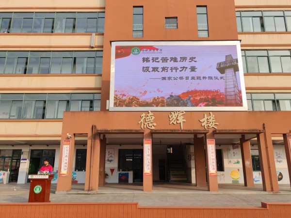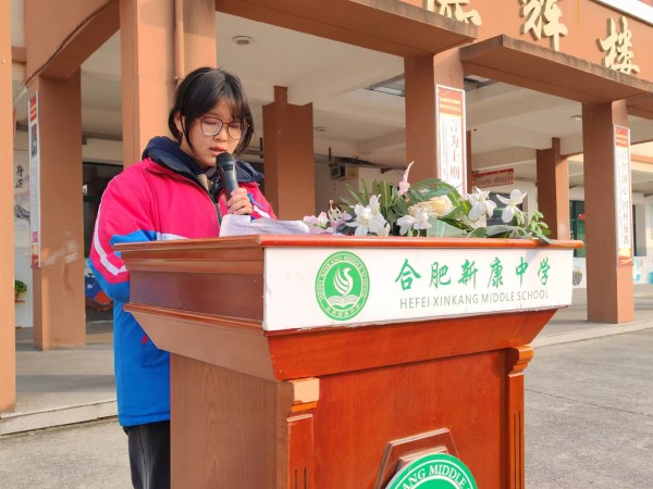 2024年12月13日是第十一个国家公祭日。为纪念死难者同胞,深入开展爱国主义教育,弘扬民族精神,合肥新康中学初中部于当日上午举行了“铭记苦难历史,汲取前行力量”主题升旗仪式。活动由九(1)曹政宇同学主持主持。