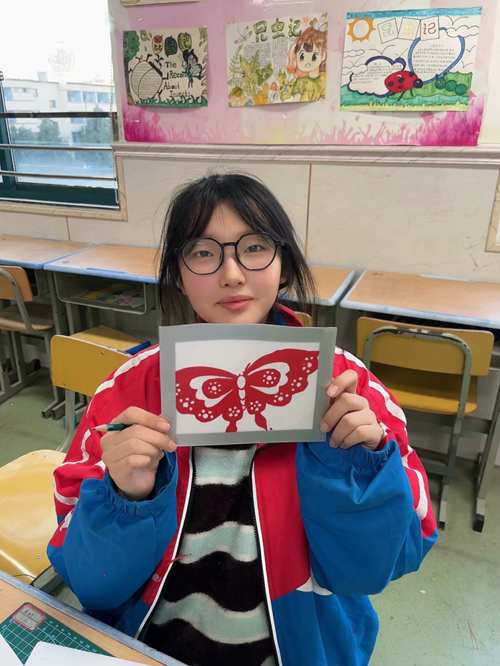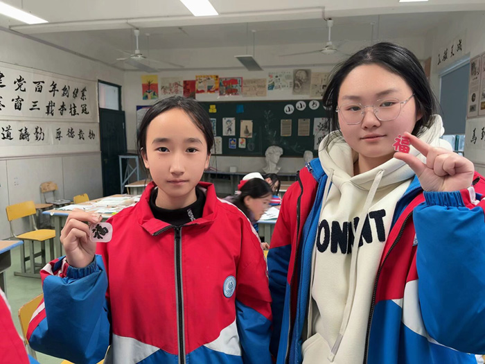 ●剪纸社团:2024年12月16日本节社团课为增添生活色彩、点燃创意火花,进行了以下活动:百福图热缩片DIY钥匙链。深度体验将剪纸的平面图形转变为立体剪纸饰品的奇妙感受。从手绘福字图案到热缩成型,再到穿串成链,每一个步骤都充满了创造的乐趣。