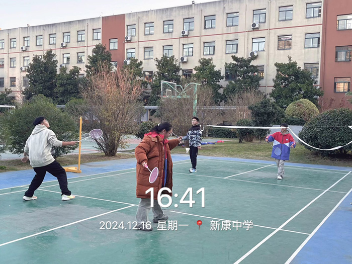 ●羽毛球社团:2024年12月16日本节社团课主要教学内容:1.网前搓球练习,教师抛球学生持拍多球练习,教师指导纠错;2.双人持拍网前平抽球训练;3.4人双打训练,自主多球练习。