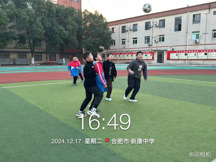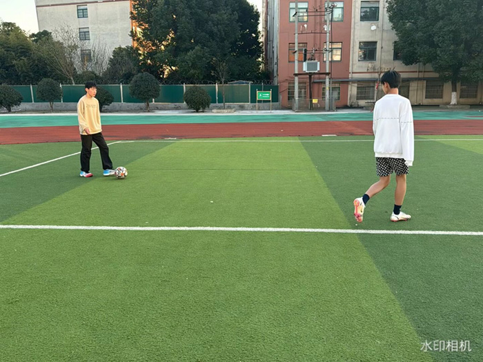 2024年12月17日本节足球社团主要内容:1.进行热身慢跑徒手操练习,减少上课时的意外伤害情况。2.回顾上节课所学内容,进行简单的球性练习,互相进行传接球。3.进行全场比赛的赛前活动,主要进行赛场入场仪式。4.进行本节课总结,拉伸放松。