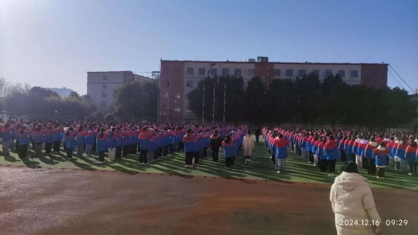 ●主题升旗仪式——12月16日上午,由合肥新康中学初中部905班承担了“知法于心,守法于行”主题活动。在升旗仪式上,同学们明白要将法律知识牢记心中,化作日常行动准则,从点滴做起,遵守法律法规,让法治精神融入校园生活,在潜移默化中助力大家成长为守法好公民,共同营造和谐环境。