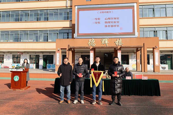 12月30日上午,在学校田径场举行教学环境专项评比颁奖仪式,党支部书记、校长王俊等校级领导出席,全体师生共同参与。