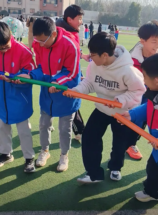 运动新玩法,趣味乐无穷。晴空下,每一项比赛都充满了竞争的激情和体验的快乐,加油声、欢笑声不绝于耳,校园俨然成了一个充满欢乐的乐园。