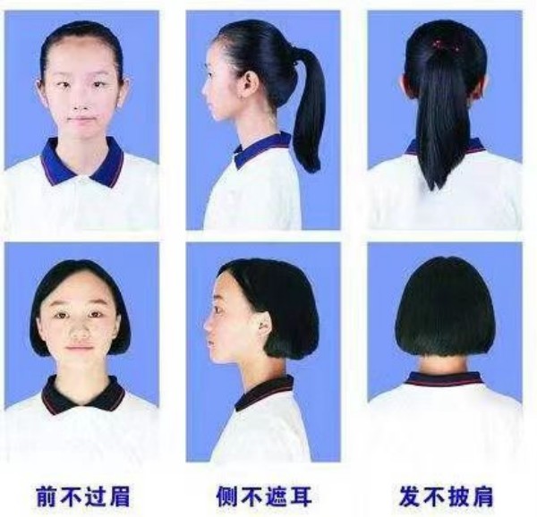 1.发型要求:男生发型要保持整洁、大方,头发不宜过长,不得留怪异发型;女生不得披头散发,发型应端庄得体,不烫染奇异发色。