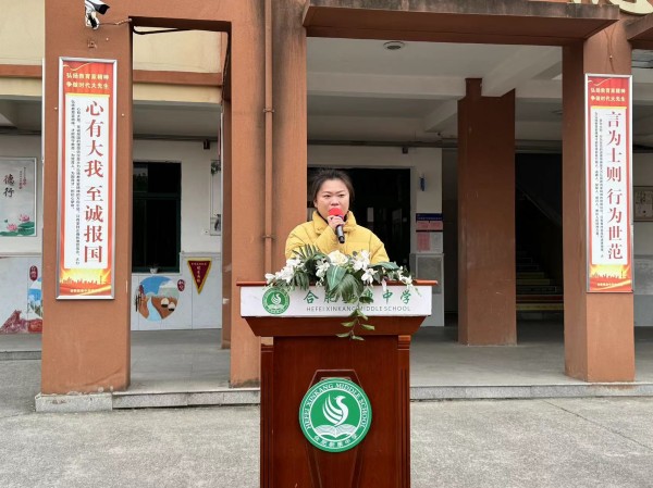 教师代表发言:初三教师代表殷琳莉老师以《一路生花,花开有声》为题,为即将奔赴中高考战场的学子们送上了真挚的祝福与殷切的期望,激励他们勇往直前,不负韶华。