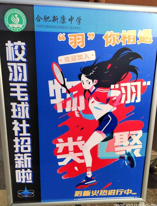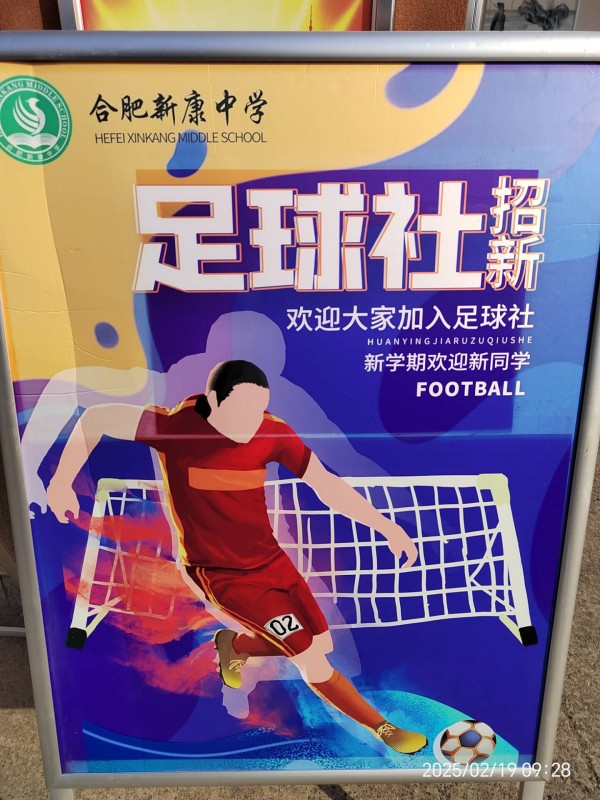 为丰富校园文化生活,给同学们提供多元发展平台,合肥新康中学初中部于2025年2月19日开展新学期社团招新活动,各社团积极参与,发布招新广告,现场气氛热烈。