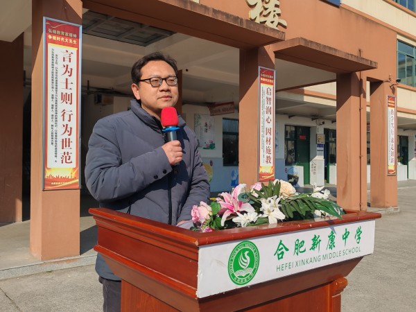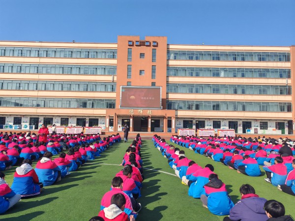 伴随着新学期的到来,我们迎来了又一个生机勃发、万象更新的美好时节。为总结上学期的教育教学成果,以激励先进,鼓舞士气。更为在新学期帮同学们收心,进一步营造良好的学习氛围,激励同学们再攀高峰。2月24日下午,合肥新康中学初中部于学校田径场隆重举行了上学期期末综合素质总结表彰大会。活动由徐雅群老师主持。大会伊始,先让同学们观看了一段关于“越努力越幸运”主题的励志视频,让同学们感受勇于奋斗、拼搏的精神。