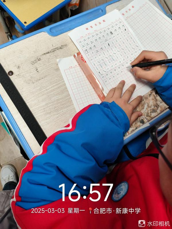 硬笔书法社团:本节课首先带同学一起学习了执笔的方法, 接着教同学们笔画点、横、竖钩的书写,最后让同学们在练字本上练习,老师巡查并进行指导。