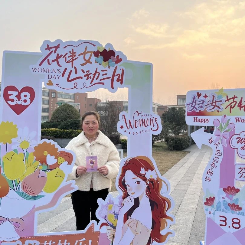 3月6日清晨6时30分,校园被春日的第一缕阳光温柔笼罩,校园内已然热闹非凡。这里设立的贺卡赠送点,成为了温暖的传递站。校领导面带微笑,将一份份饱含深情与祝福的节日贺卡,递到每一位女教职工手中。贺卡上的字句,承载着学校对她们的敬意与感谢,温暖着她们的心。一旁的照片墙,设计得温馨又别致,女教职工们纷纷在此拍照打卡,用相机定格这一难忘的瞬间。她们的笑容在春日暖阳的映照下格外灿烂,宛如绽放的花朵,记录下独属于这个节日的美好与幸福。