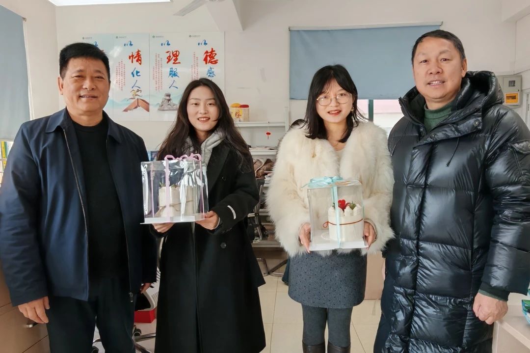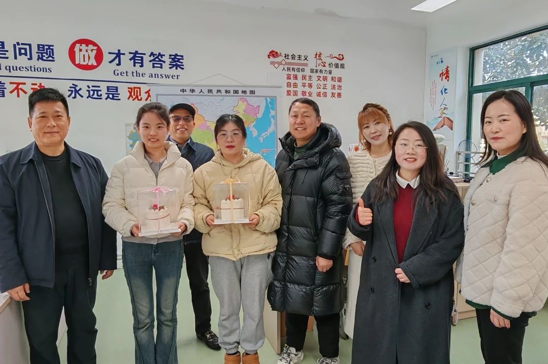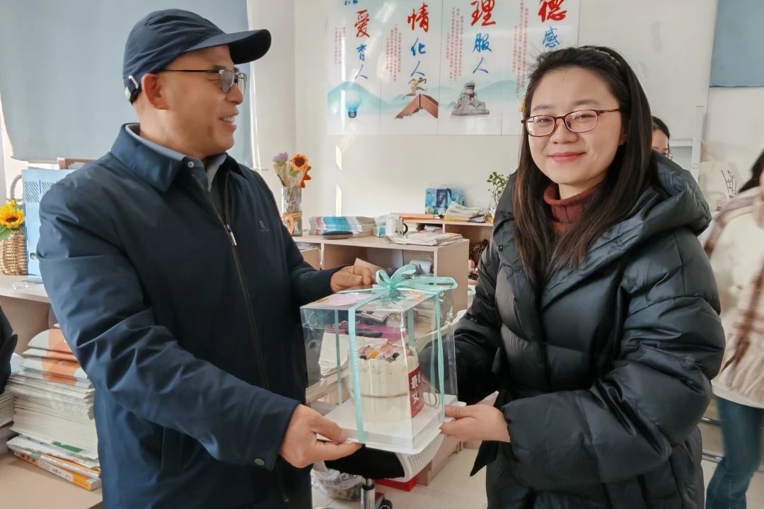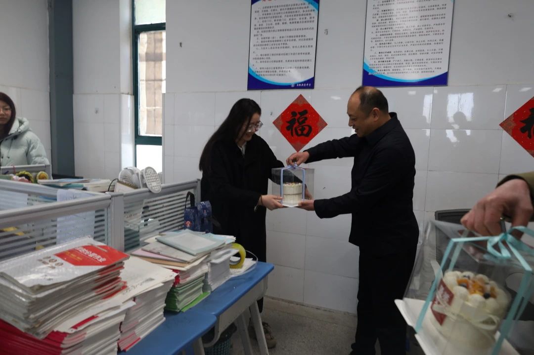 大课间时分,学校领导班子成员满怀热忱,分别前往初、高中部及行政后勤部。他们与女教职工们亲切握手、交谈,将一份份精心准备的节日礼物送到她们手中。每一份礼物都蕴含着学校对女教职工们深深的关怀,感谢她们在教育教学、后勤管理等各项工作中,以女性特有的细腻、智慧与坚韧,为学校的发展无私奉献,撑起了学校的“半边天”。女教职工们接过礼物,眼中闪烁着感动的光芒,欢声笑语回荡在校园的各个角落,让这个春日的校园充满了温情与爱意。