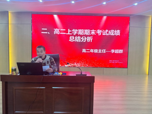 大会伊始,高二年级李超群主任对高二上学期的学情进行了深度剖析。通过具体数据,呈现同学们的学情状况,精准指出优势与不足之处,就后一阶段的学习和学法提出了明确要求,进一步深化了全体同学的目标意识、责任意识。