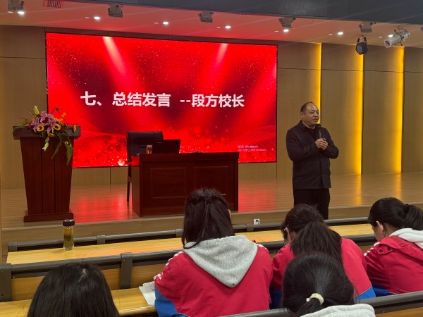 最后,高中部段方校长进行总结发言。他回顾了本次大会的重点内容,鼓励同学们在新学期努力学习、严守纪律,以积极向上的态度迎接新的挑战,并对同学们的未来发展提出了殷切期望,为大会画上了圆满的句号。
