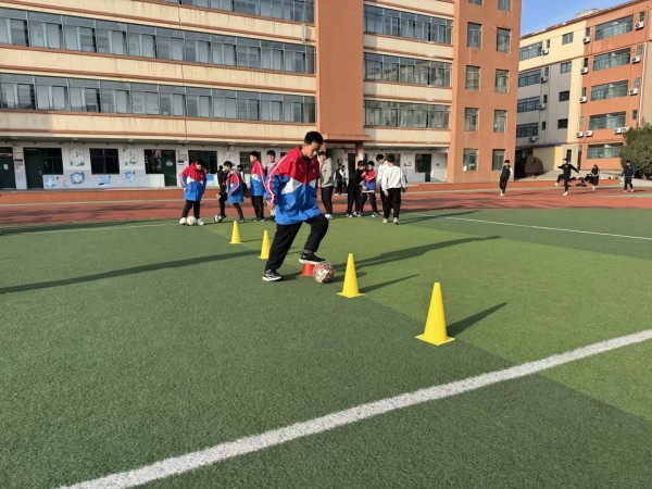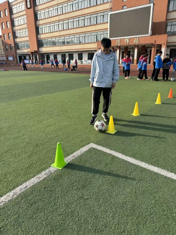 接着又进行了个人技术绕杆教学,设置8字绕杆路线(间距2米),要求学生带球依次绕过10个障碍,记录完成时间与动作规范性。最后,教师逐个指导点评,让优秀学生展示示范,并进行传球准确度小游戏。