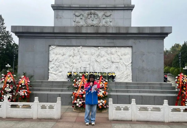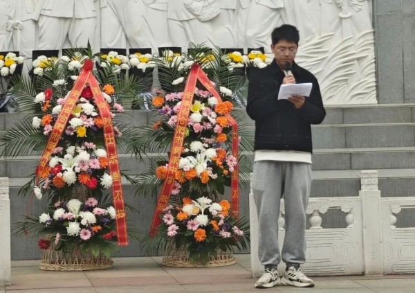 高二3班的许佳琪作为学生代表上台发言,她的言辞间满是对先烈的敬仰与尊崇,以及传承红色精神、勇担时代使命的坚定决心。