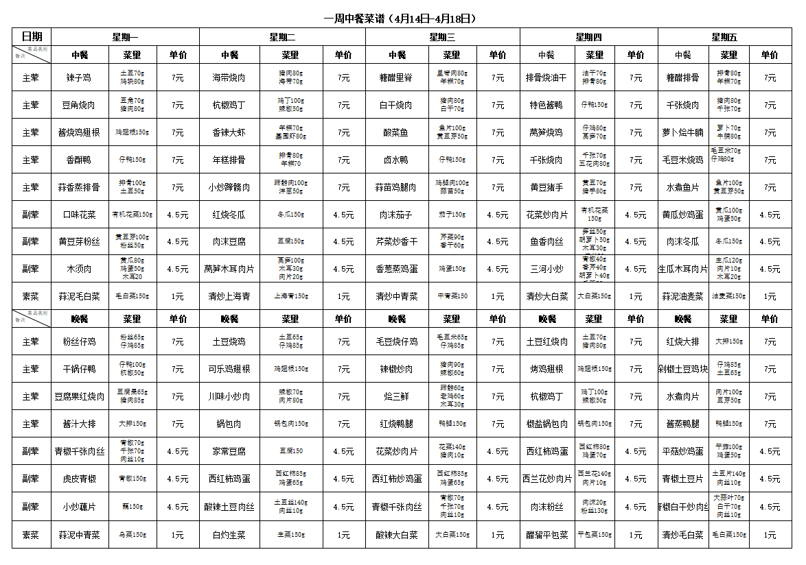 合肥新康中学食堂一周菜谱(4月14日-4月18日)