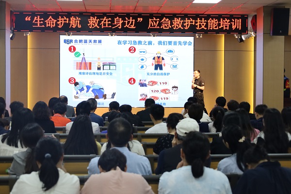 为全面提升校园突发事件应急处置能力,切实筑牢师生安全屏障,4月11日,合肥新康中学特别开展"生命护航 '救'在身边"应急救护技能培训活动。本次活动邀请合肥市蓝天救援队资深急救教师单彬担任主讲,通过"理论+实操"双轨教学模式,为教职工带来专业急救技能培训。