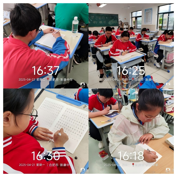 练习过程中,老师走下讲台,逐一巡查指导,及时纠正同学们书写中的错误,对笔画力度、角度和结构进行细致的点评。同学们态度积极,课堂氛围良好。
