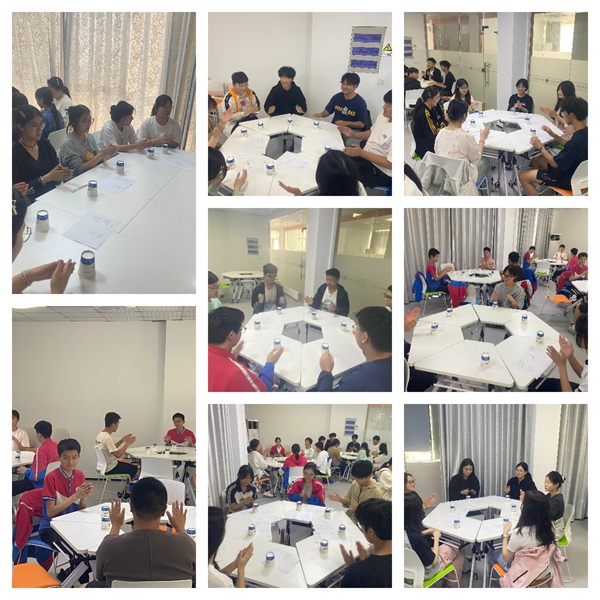 活动初期,部分学生稍显拘谨,但当同伴们绽放真诚笑颜,清脆敲击声与欢笑声渐成合鸣,原本紧绷的氛围瞬间消融。青春的笑颜在光影中彼此感染,信任的节拍在指尖自然流淌,团队默契在欢声笑语中悄然生长。