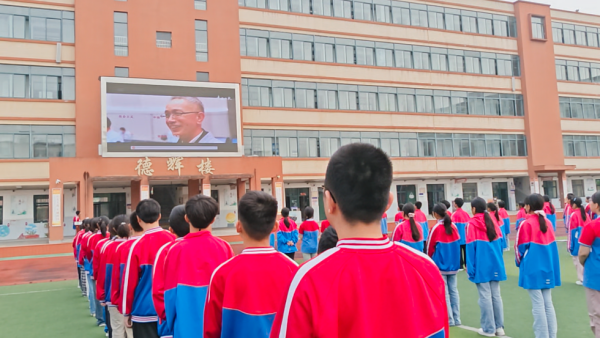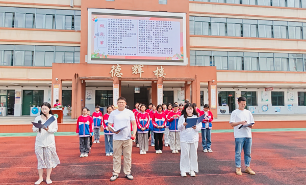 升旗仪式在庄严的国歌声中拉开帷幕。全体师生面向国旗肃立,少先队员行队礼,目送五星红旗冉冉升起。飘扬的五星红旗与师生们坚定的神情相互映衬,传递出传承红色基因的坚定信念。