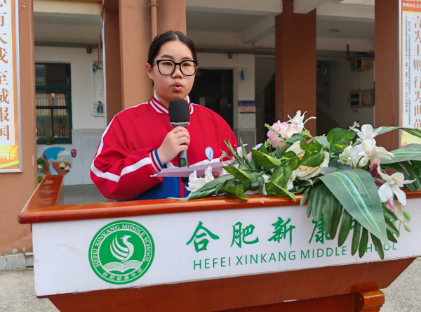 随后,七(4)班程雅熙同学以《青春宣言》呼应先辈:“迷茫时,五四精神是灼灼明灯;奋进时,它是猎猎旌旗!”