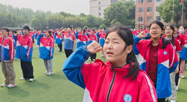 活动在《少年中国说》集体宣誓中达到高潮。新康学子们高举右拳,誓言“天地苍苍,乾坤茫茫,中华少年顶天立地当自强”。声震云霄的誓言彰显“少年雄于地球,则国雄于地球”的时代强音。