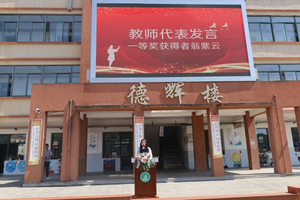 在“师道传承·礼赞耕耘岁月”环节,“守教育初心,铸师德之魂”主题师德师风征文表彰大会成为情感共鸣的舞台。我校工会郭静主席宣读获奖名单后,一等奖获得者翁紫云老师以质朴的语言分享教育故事——作业本上的朱批、实验室的灯火、日常的关怀,点滴细节凝聚成“捧着一颗心来,不带半根草去”的师者初心。这些浸润心血的文字,让陶行知先生的教育箴言在校园里焕发出新的生机,深刻诠释了“劳动即师德,奉献即芳华”的育人真谛。